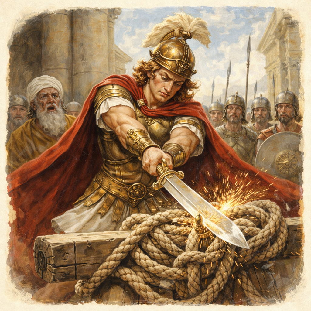 Our podcast artwork features a knot being cut through, a nod to the legendary Gordian Knot. According to the story, Alexander the Great was presented with an impossibly complex knot that no one could untangle. Instead of spending years trying to work through its complications, he simply drew his sword and cut straight through it.